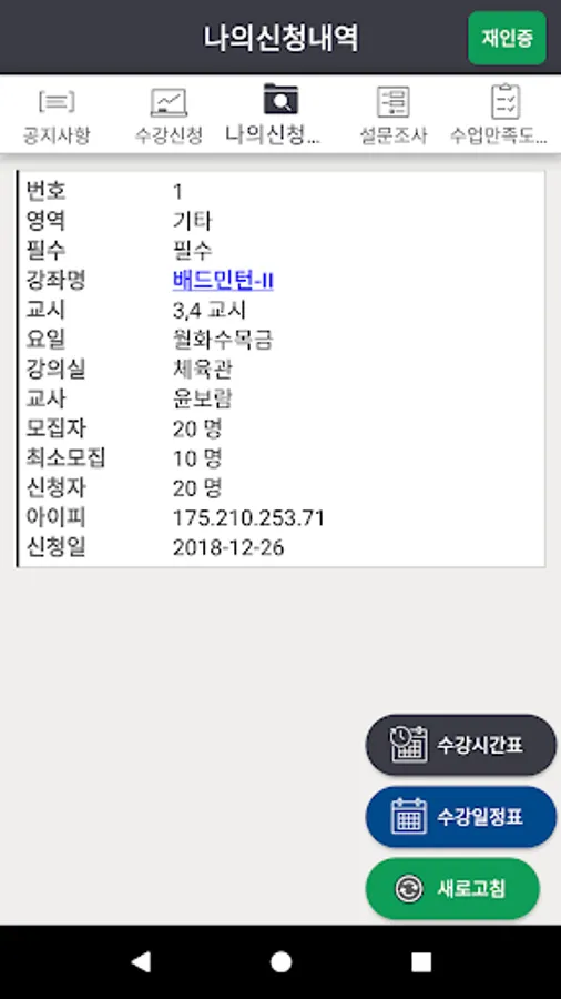 You can easily and easily enter courses, survey and class satisfaction, and you can process and confirm my application details anytime, anywhere.