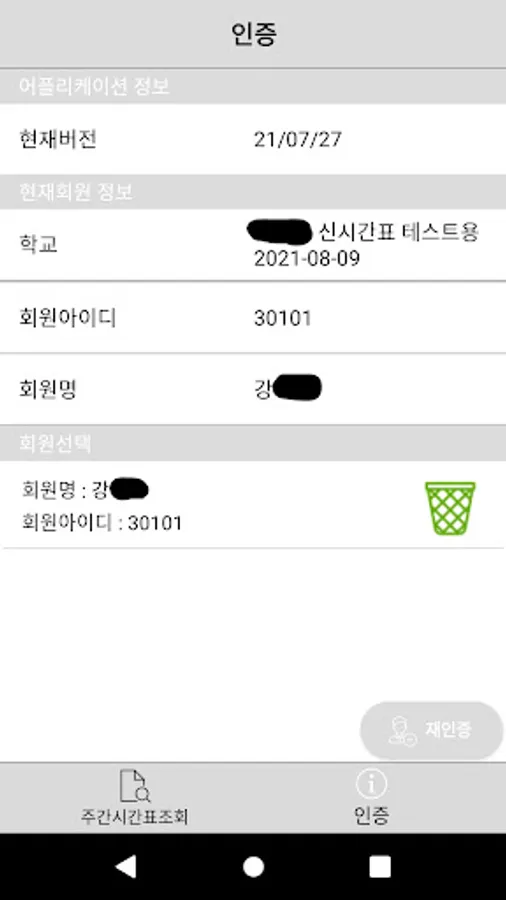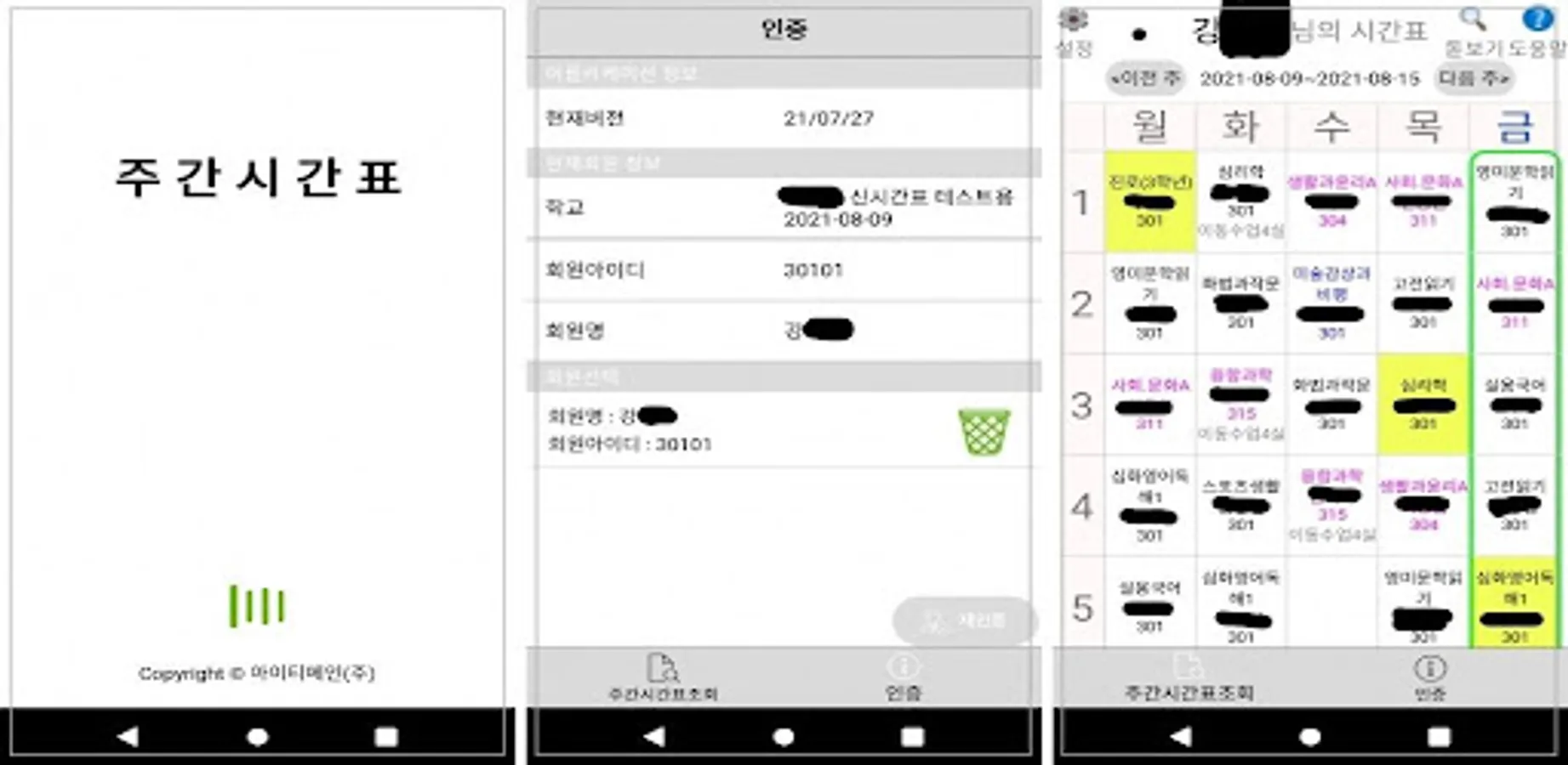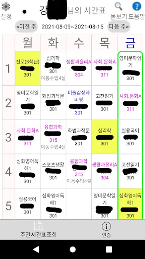 학교에서 설정해준시간표를 확인할 수 있습니다