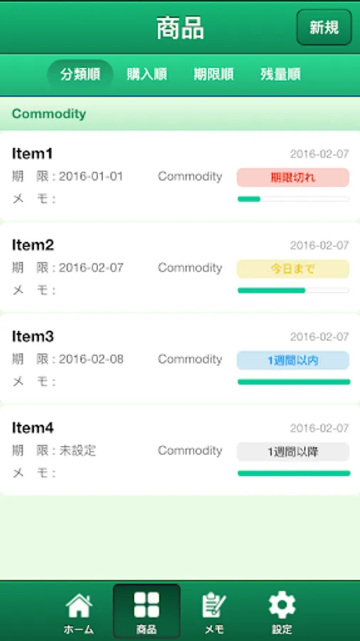 食品や日用品などの賞味期限、残量を手軽に管理できるアプリです。