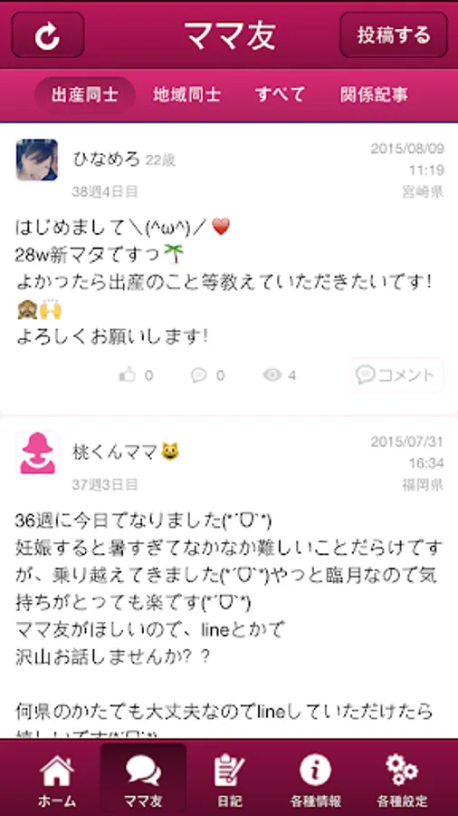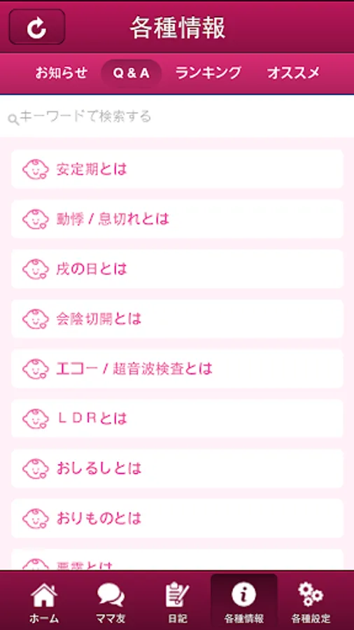 Pregnancy days, appearance of the baby, how the mom, that you want to care, senior mom advice, mom friend making, We offer a wide range of information and functions, such as diary.