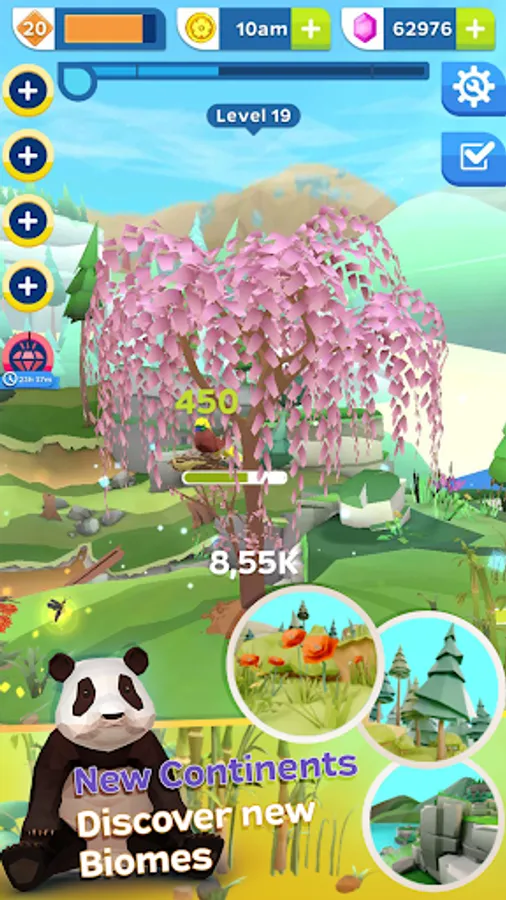 Create a busy biosphere by harvesting ‘Eco Points’ and invest in upgrades for the tree, its surrounding habitats, and visiting animals.