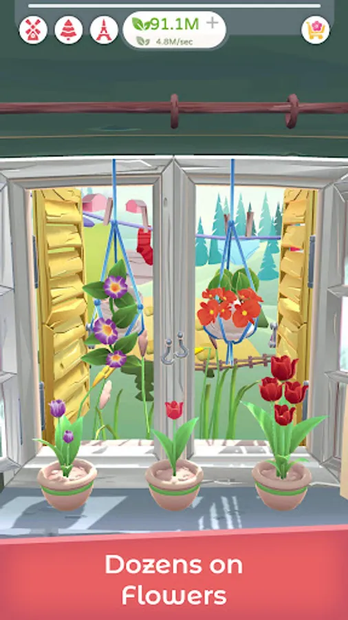 Unlock many beautiful window sills and vistas by progressing in the game.