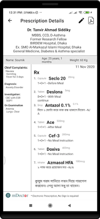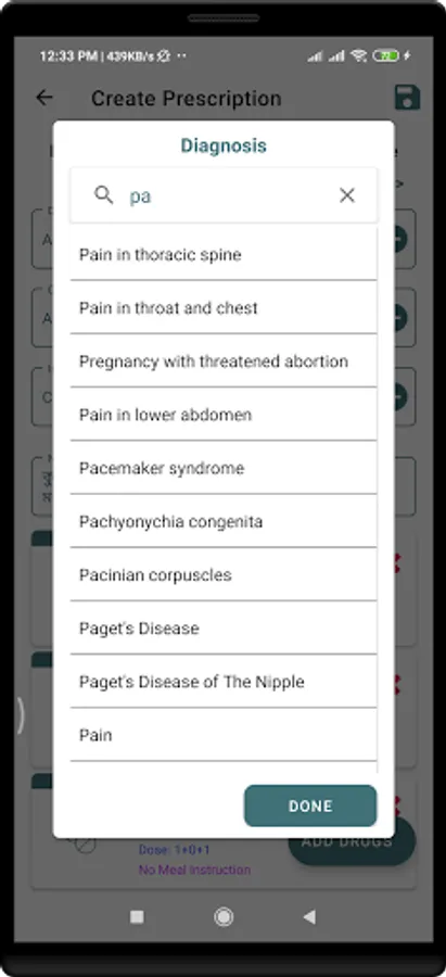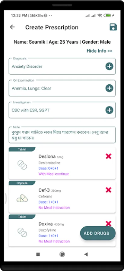 * Can create a prescription from the app and share it with the patients.