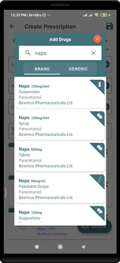 * Can search for drugs from a vast range of drug databases by both brand name and generic name and can also create necessary brands.