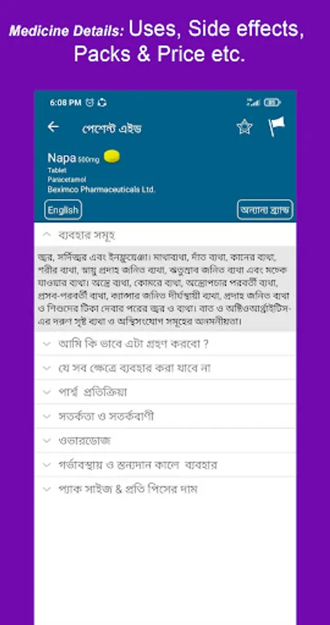 FAST MEDICINE SEARCH - Complete medicine listings with fast search and quick access to a huge medicine database both in English & Bangla. The most comprehensive database of medicine information available for different medicine brands including the generic name, form, strength, company and price.