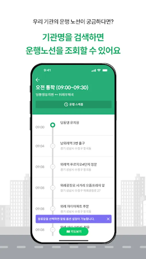 - You can prepare for the case where the vehicle arrives later than the scheduled arrival time at the stop or arrives early through GPS-based vehicle location inquiry in real time.