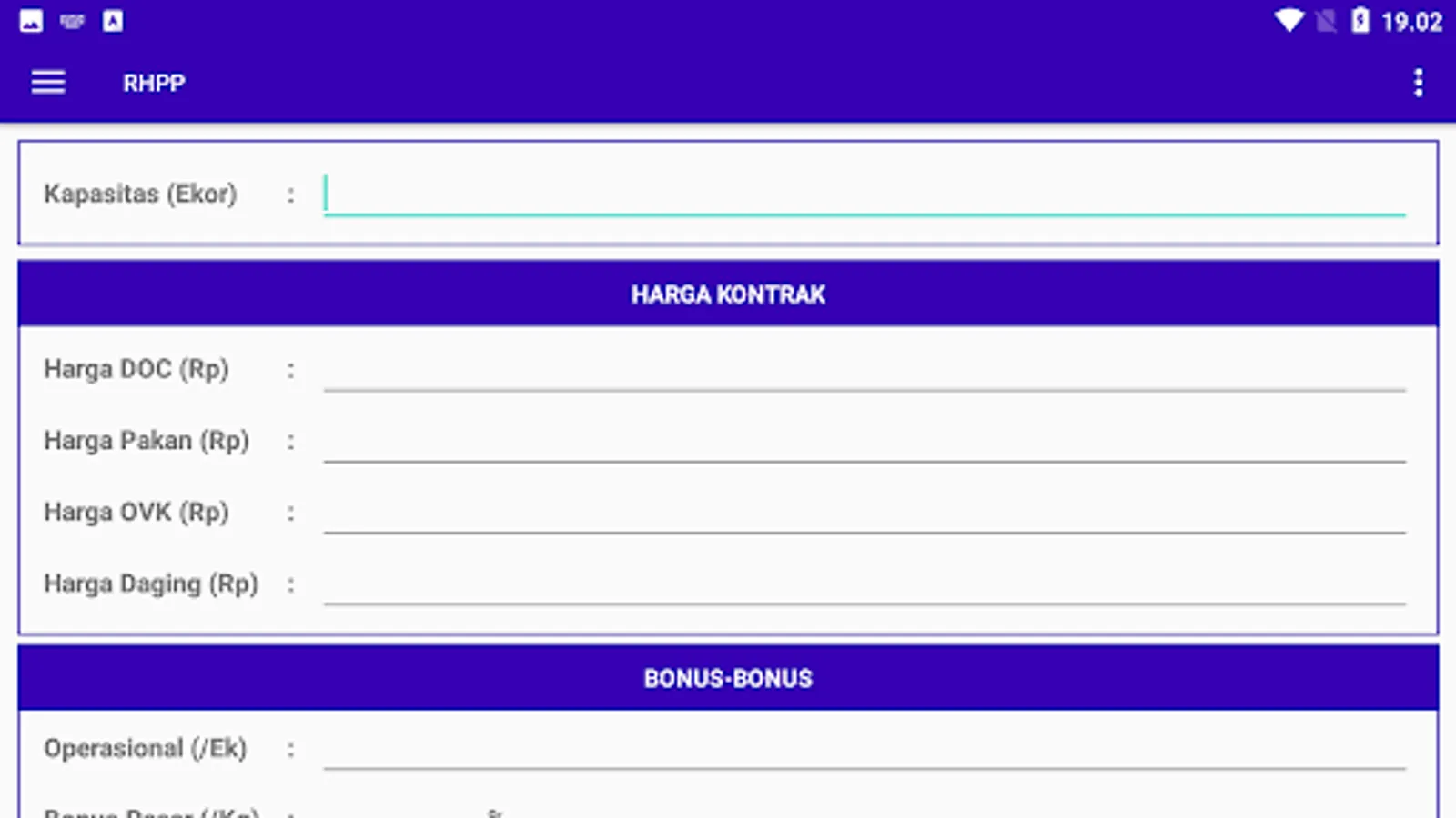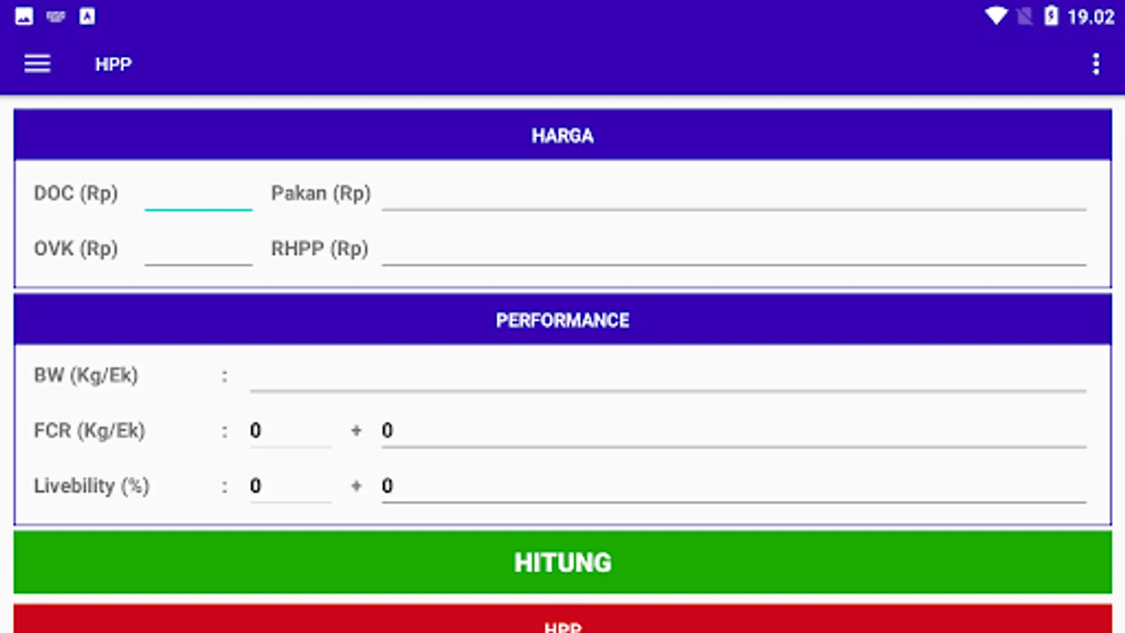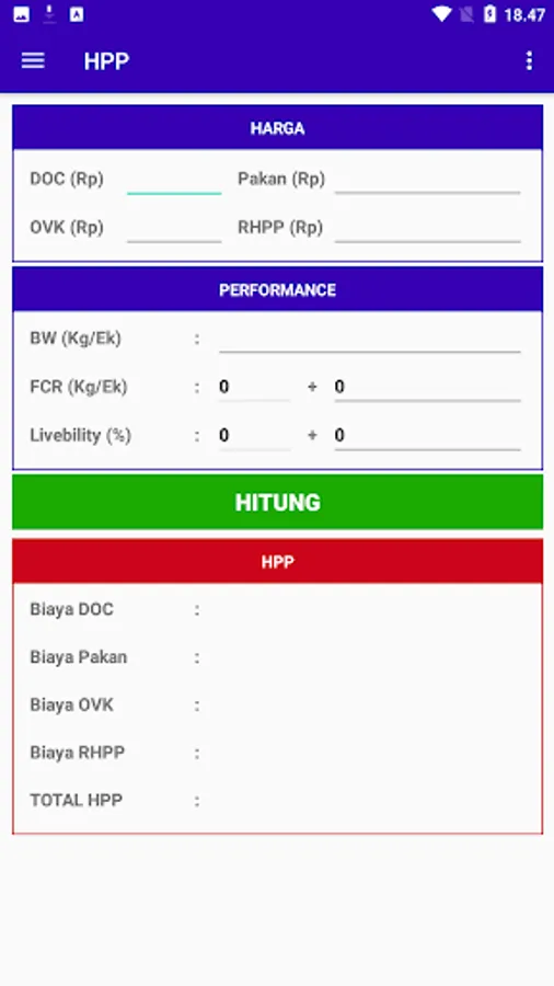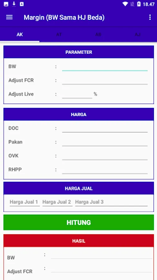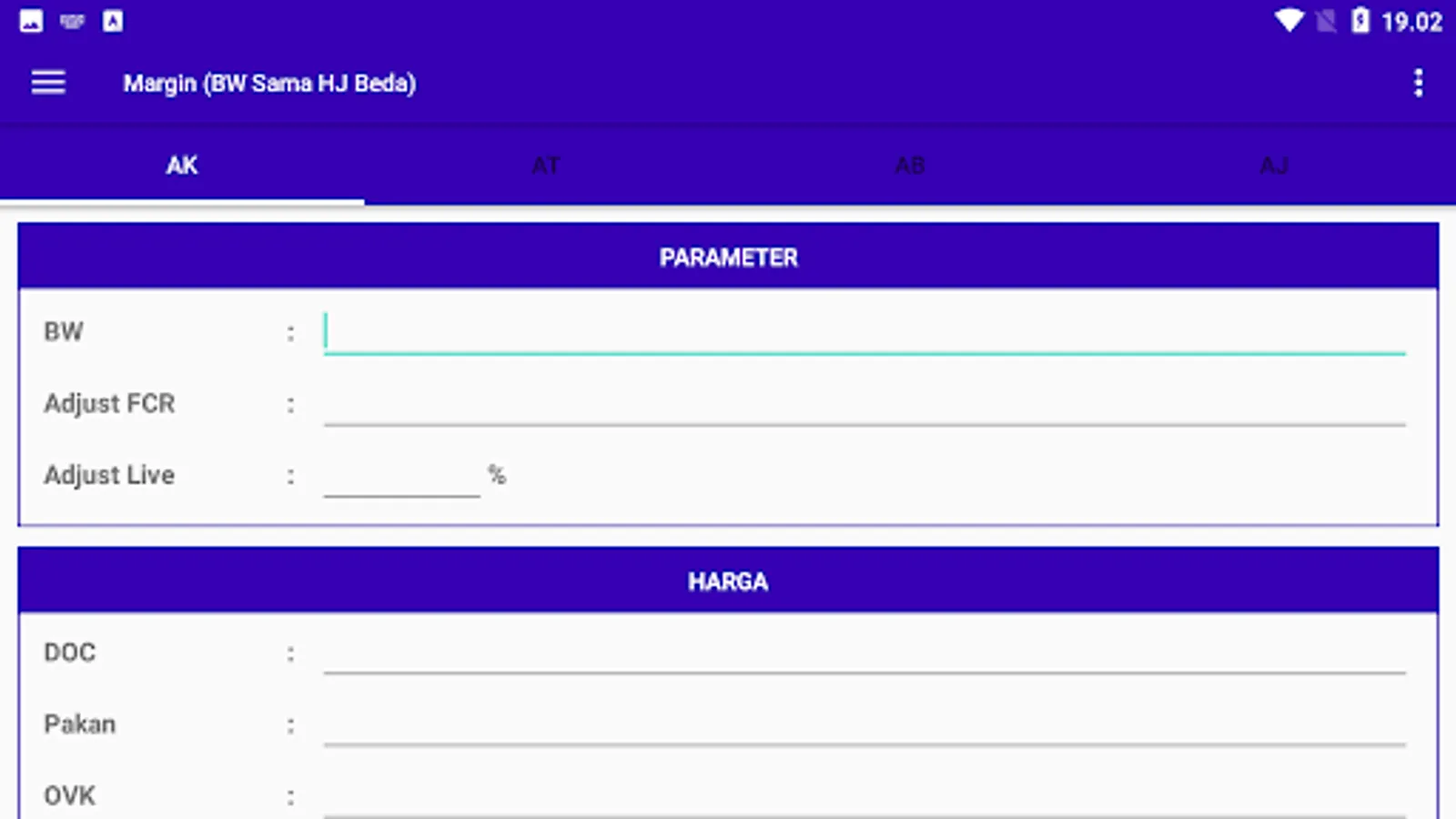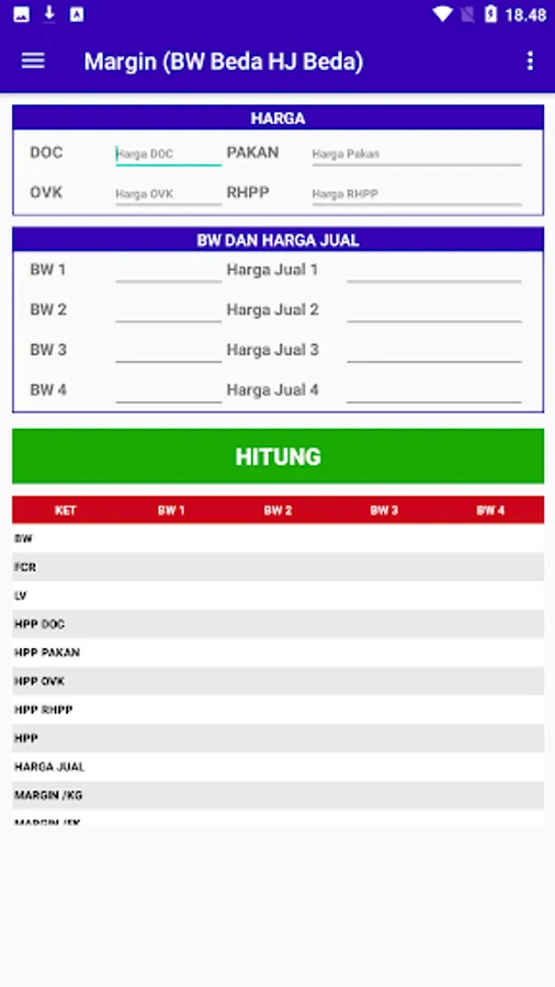 The application is used to calculate the margin of broiler chickens specifically for employees of PT. Mustika Jaya Lestari