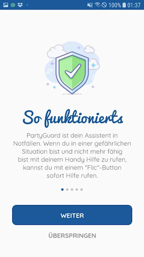 In addition, you can select up to 10 emergency contacts in the app, which receive an SMS with the current GPS coordinates in case of an emergency, regardless of whether they have installed PartyGuard on their smartphone.