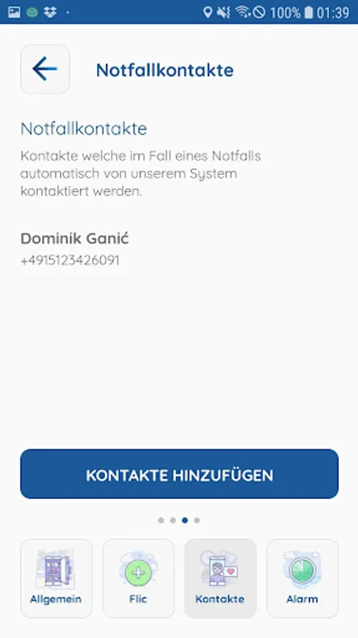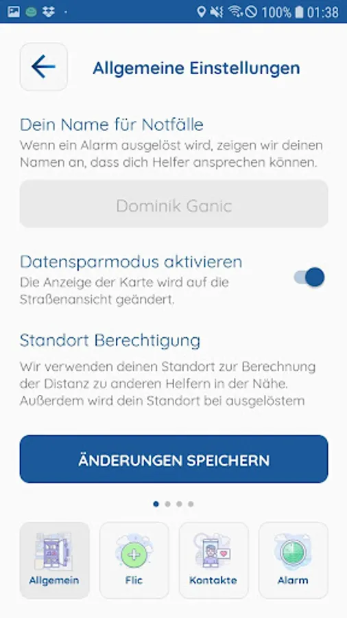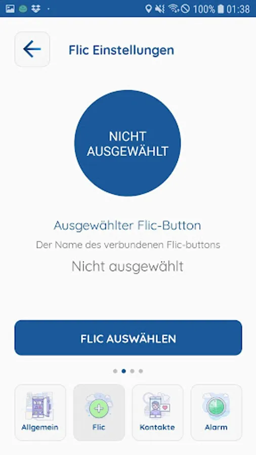 Especially advantageous is the Flic-Button integration. Flic buttons are small Bluetooth buttons that you can attach to your clothes, for example under your clothes. In a dangerous situation where you need urgent help, you can trigger an alarm after 3 quick clicks. You do not need to have your phone handy, do not even pick it up.
