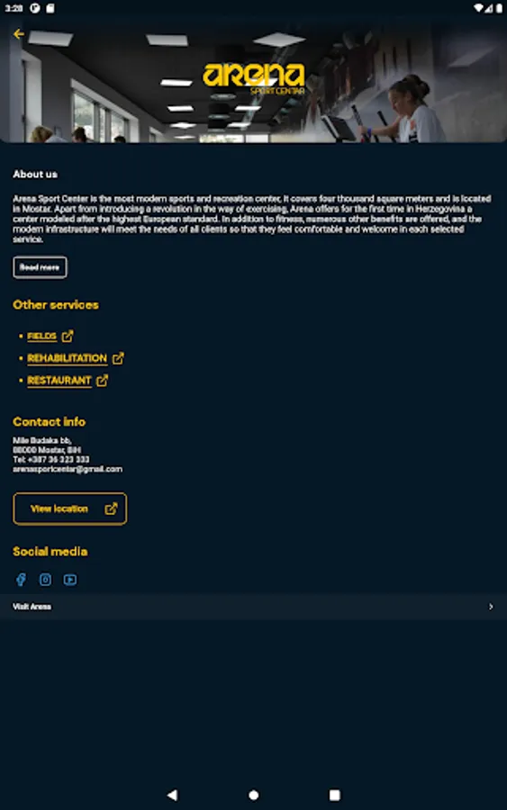The Arena application is designed exclusively for members of the Arena Sports Center, providing them with convenient access to all the latest news and updates from the center. Stay connected and receive timely notifications about membership details, exclusive offers, and other exciting developments within the Arena Sports Center. For Arena Sports Center employees, the app serves as a valuable tool to stay informed and receive relevant information on various aspects of the center. Whether you're a member or an employee, the Arena app ensures you never miss out on important announcements, events, or promotions.