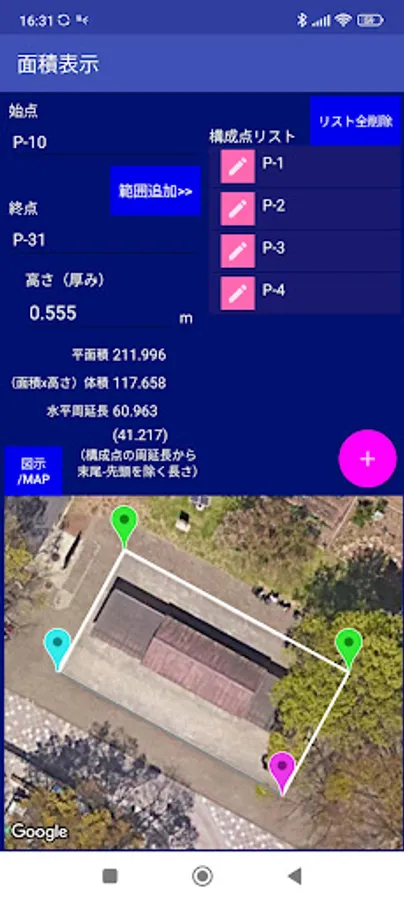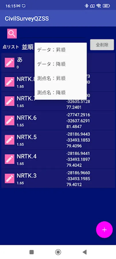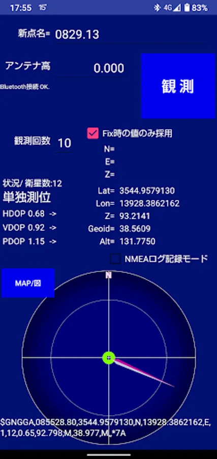This app connects to a GNSS receiver, records the latitude and longitude and plane rectangular coordinates of the received point, and registers the coordinates of the target position to display the difference from the current position. ) are equipped with various functions for