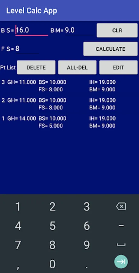 There is a function to calculate height from observation value of survey using auto level, and a function to input FH and calculate the difference between GH and FH.