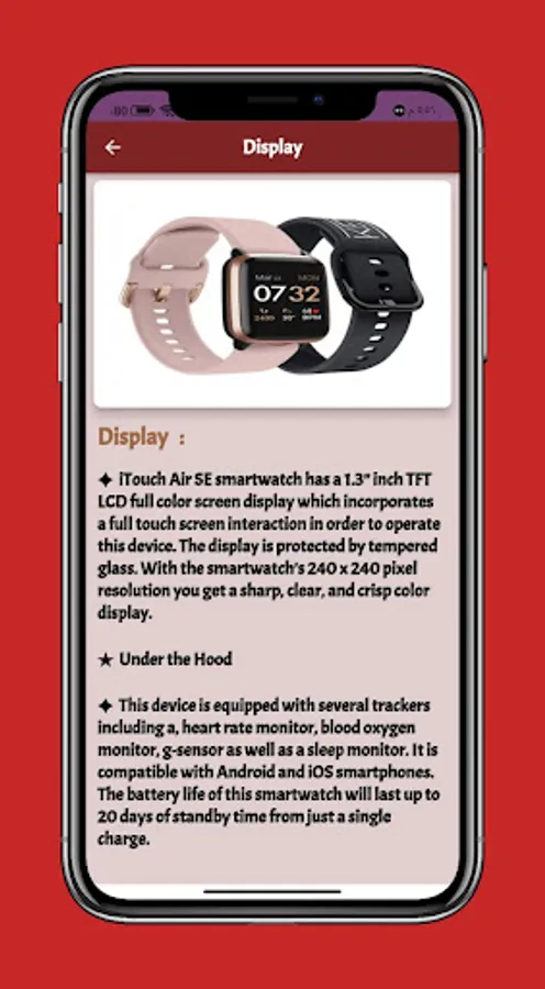You can find all the details you require about the itouch air 3 smart watch smartwatch in this app.