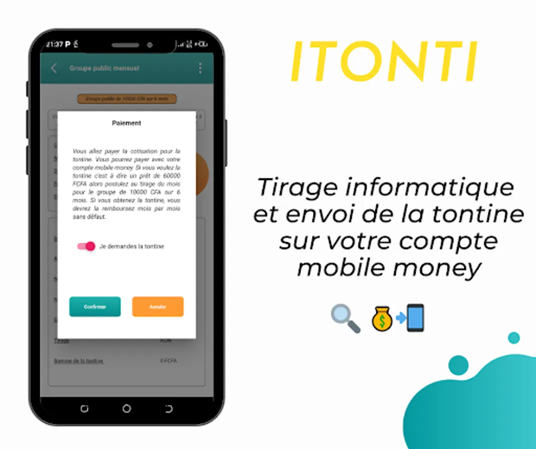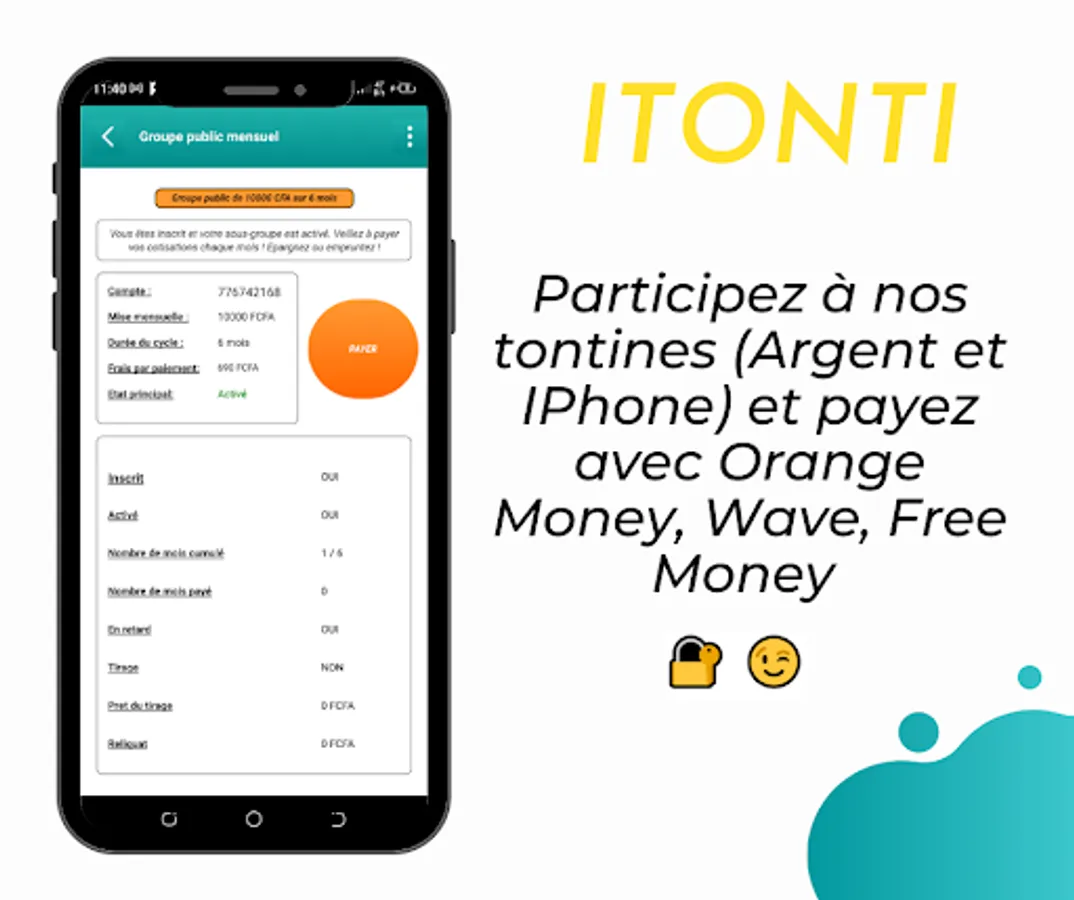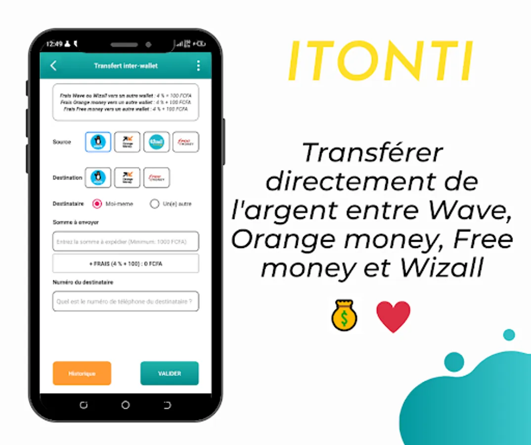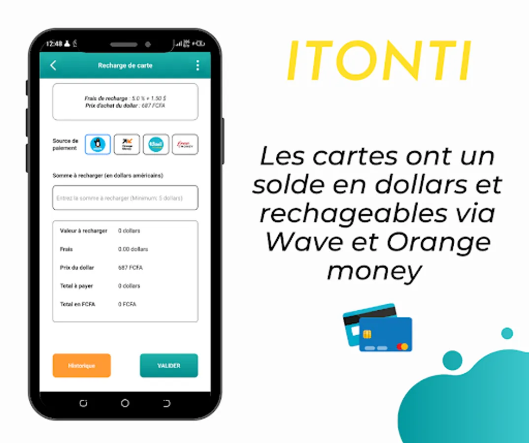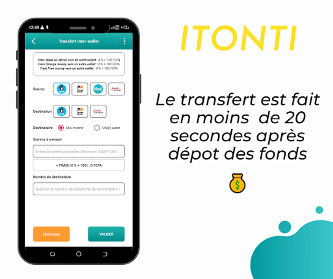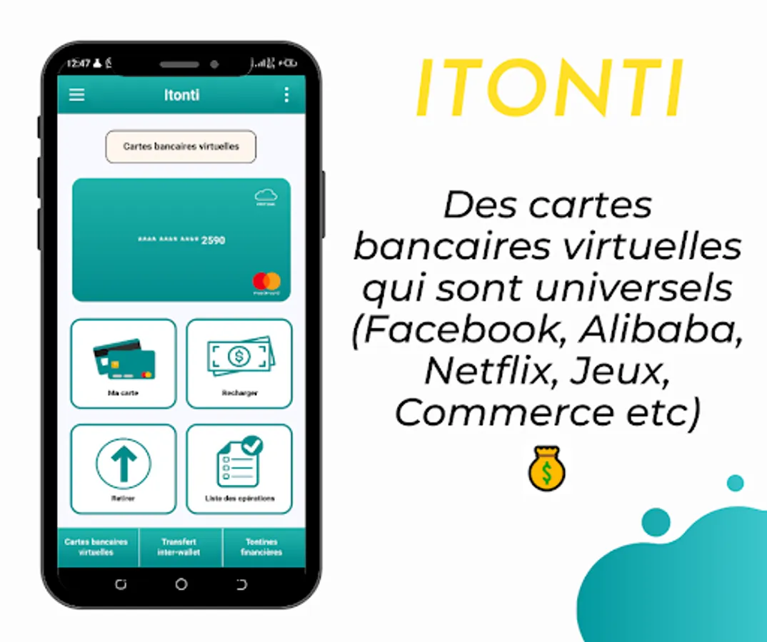 Itonti is an application that allows inter-wallet transfer between Wave, Orange money and Free money and the purchase of telephone credit with them. Finally he digitizes and simplifies the Tontine with tontines of money and IPhone. Also, we offer virtual bank cards.