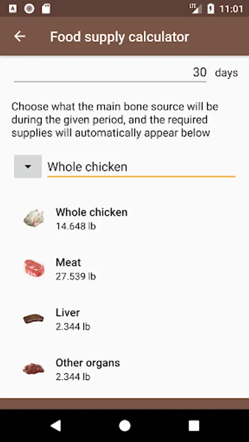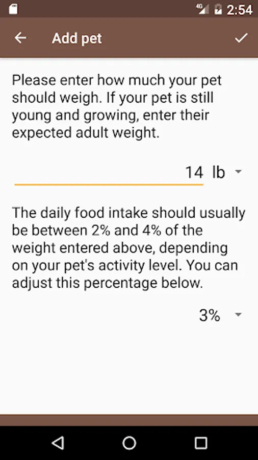 In order to help you with shopping, the app also features a Food Supply Calculator that tells you how much food will be needed by your pets for a given number of days.