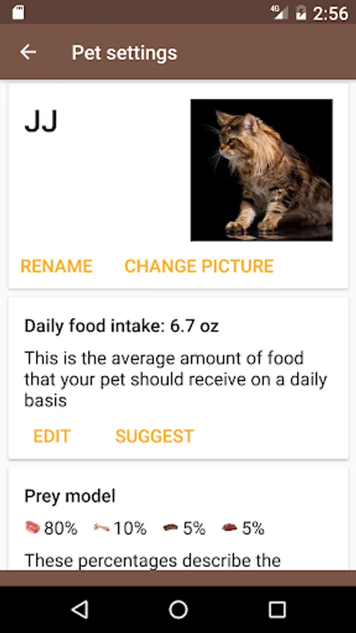 The purpose of this app is to assist people who feed a Prey Model raw diet to their cats, dogs, or ferrets. In case you are not familiar with this style of raw feeding, there is a short description and links to more comprehensive information at the bottom.