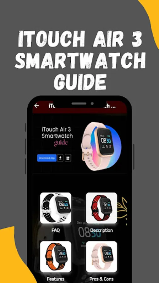 iTouch air 3 smart watch review and user guide app, where you can review and try the iTouch Air 3 smart watch through the app with ease. You can also browse all features and specifications of itouch air 3 smart watch