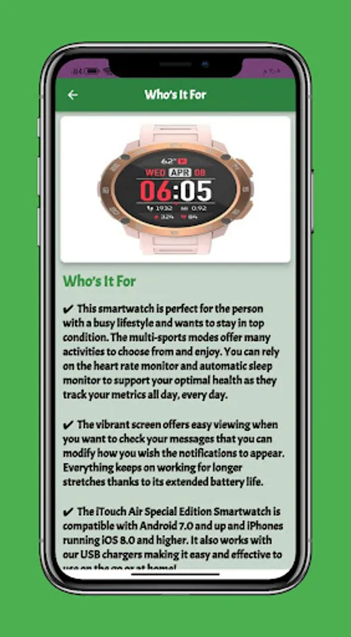 welcome to the optimising activity watch in iTouch Explorer 3 app