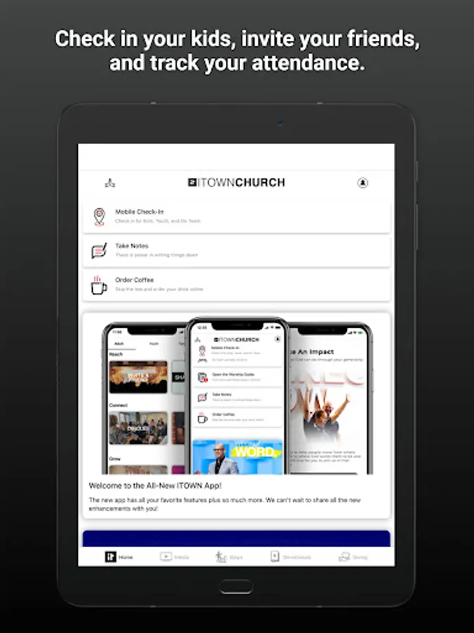 The ITOWN Church app is packed with powerful content and resources to help you grow in your relationship with God and stay connected with your church.
