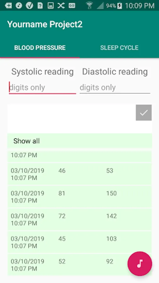 This project implements a personal database for health-related data such as blood pressure and sleep cycle, with music feature for sleep enhancement.