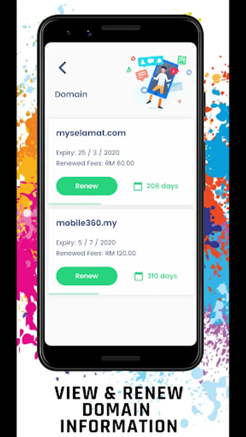 Be able to manage your domain name services with us right within the app. See updates, latest promotions, domain expiry and renew domain names managed by us.