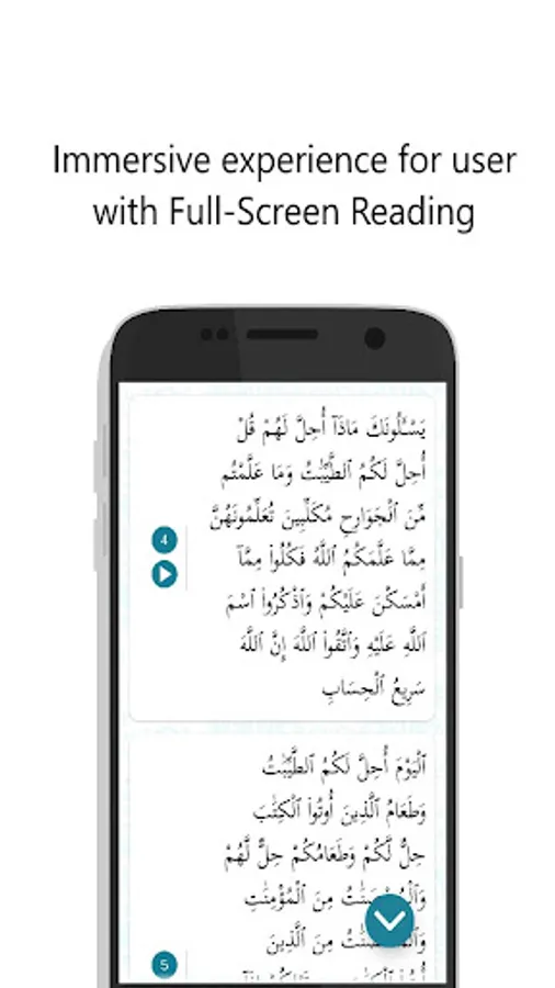 Continue reading where you left off. App automatically saves your last read ayah, avoiding you to maintain bookmarks.