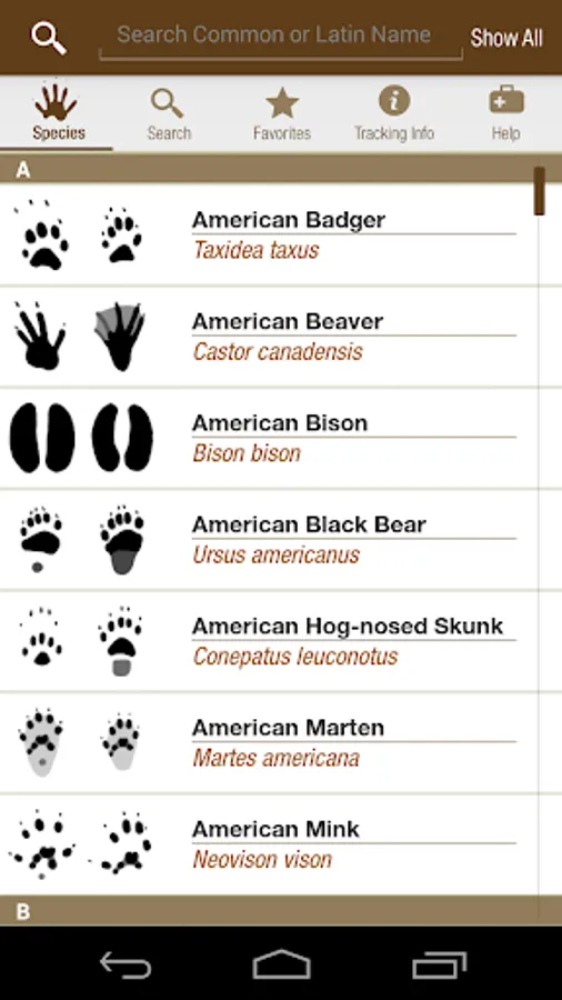 iTrack Wildlife is a comprehensive and easy to use digital field guide to mammal tracks. Whether you're a naturalist, a hunter, a nature lover, an outdoor enthusiast, or a wildlife biologist, you will find iTrack Wildlife to be a terrific companion on your outdoor adventures. While the simple and intuitive design make this app accessible to the novice, the wealth of accurate information and powerful search tools will appeal to experts and wildlife professionals.
