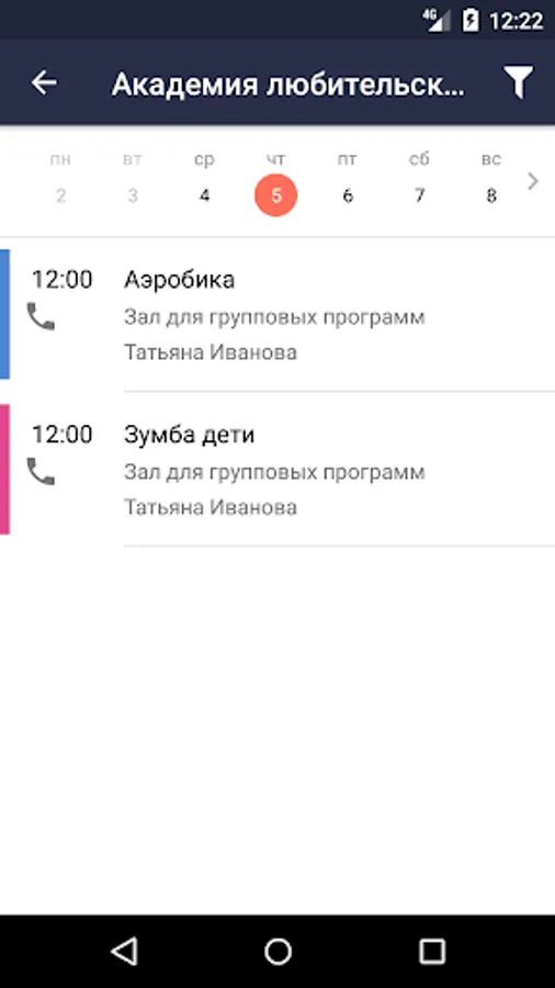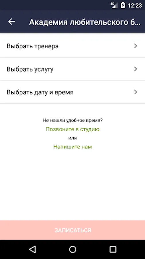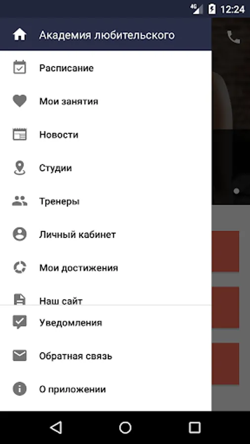 With the application you can: - receive full information, including photos and contact information, - see the current schedule of all types of classes at the academy., - create a personal schedule and make personal training sessions in it, receive notifications about upcoming trainings and about all changes, - get acquainted with special offers of the Academy and learn about upcoming events, - send an application for entry into the Academy. - send an application for freezing and renewing the card of a member of the academy.