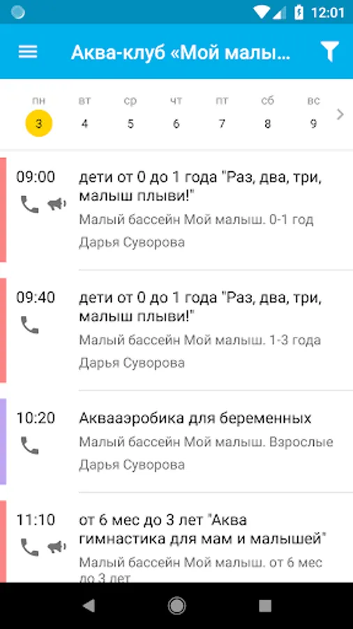 Using the application, you can follow the news, Aquaclub schedule, quickly receive information about changes in the schedule and special offers, sign up for classes on your own, make online payments, receive bonuses and discounts.