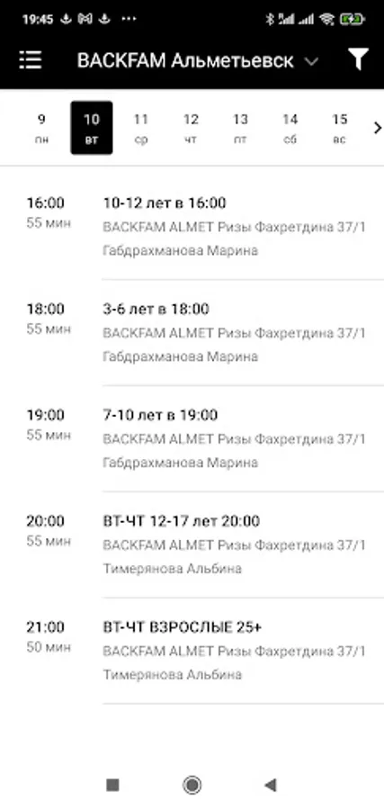 - see the current schedule of all types of club activities and promptly receive information about changes in the schedule