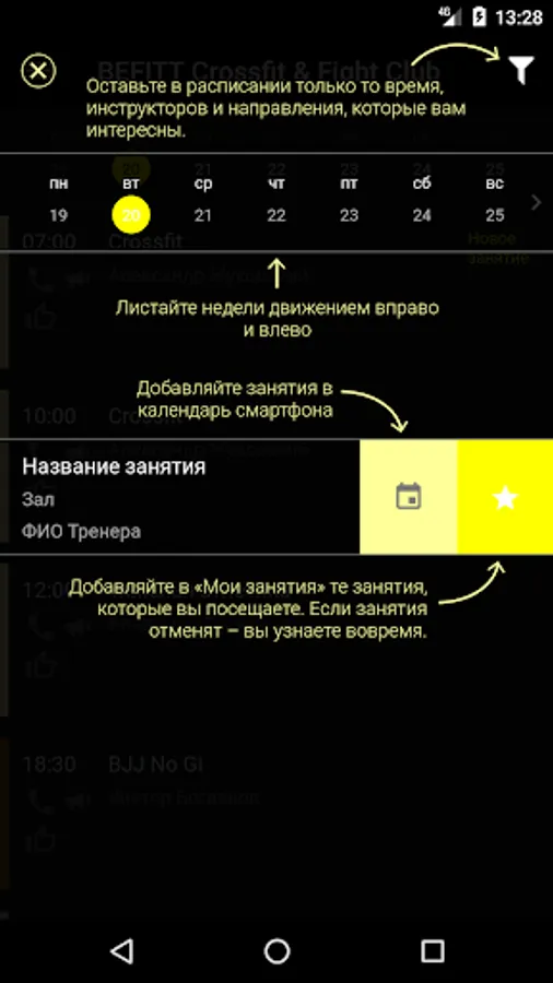 With the app you can follow the news, schedule of clubs, to receive information about changes in the schedule and special offers.