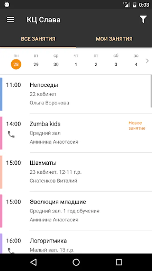 With the app you can follow the news, schedule clubs keep your personal schedule, receive information about changes in the schedule and special offers.