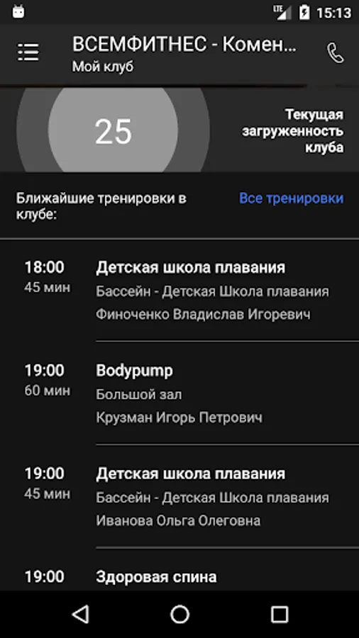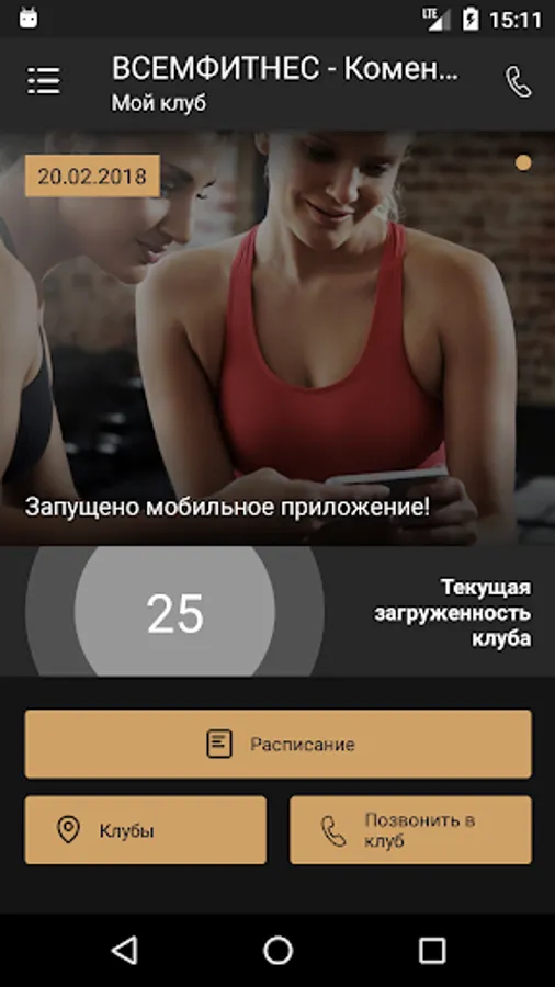 Using the application, you can follow the news, club schedules, quickly receive information about changes in the schedule and special offers.