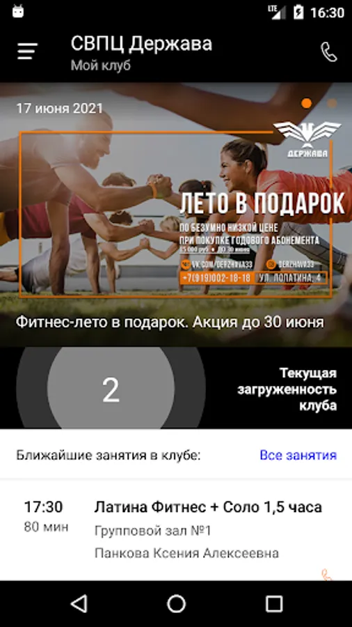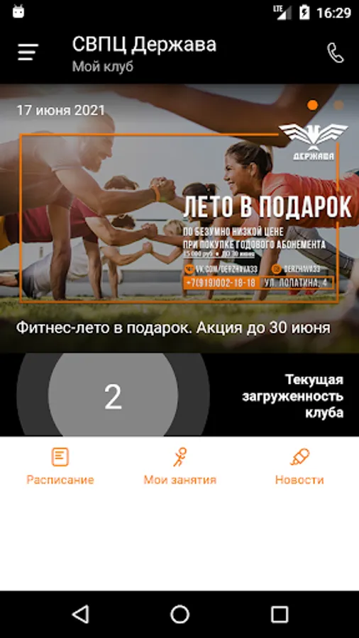 With the app you can follow the news, the schedule of the sports center, to receive information about changes in the schedule and special offers.