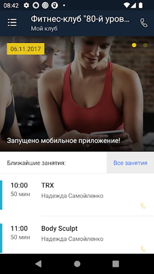 With the app you can follow the news, the schedule of the club, to receive information about changes in the schedule and special offers, and more.