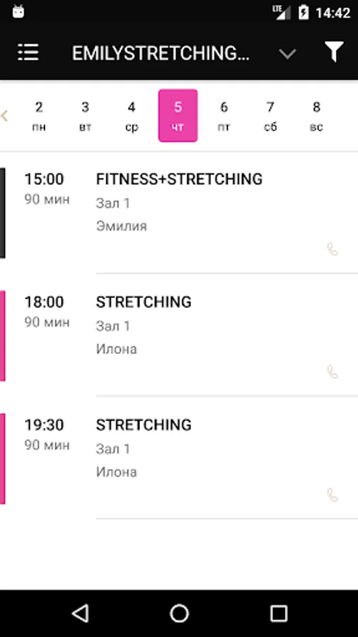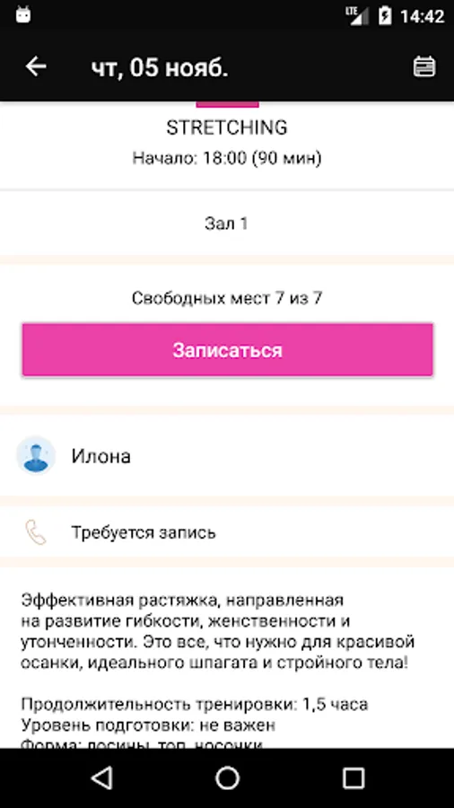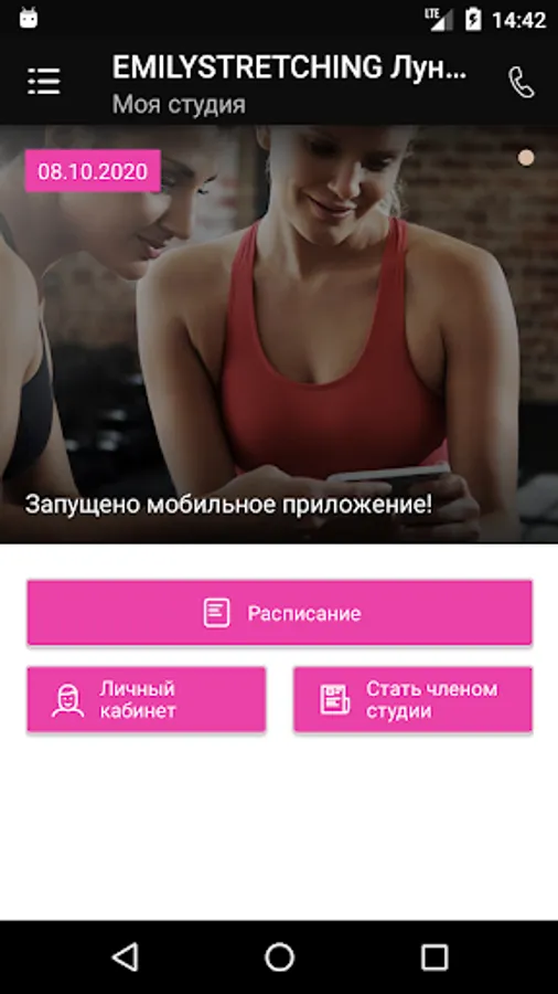 Using the application, you can sign up for workouts, see the studio schedule, get information about special offers and promotions.