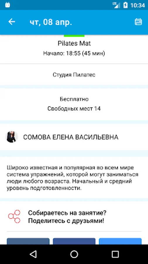 Using the application, you can follow the club's news, sign up for your favorite workouts, and promptly receive information about changes in the schedule and special offers.