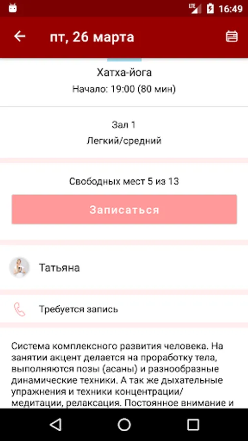 By installing the application, you can independently sign up for classes and cancel your appointment, receive information about changes in the schedule and special offers, receive bonuses and discounts, leave feedback and suggestions about the club's work. Renew your subscription yourself.