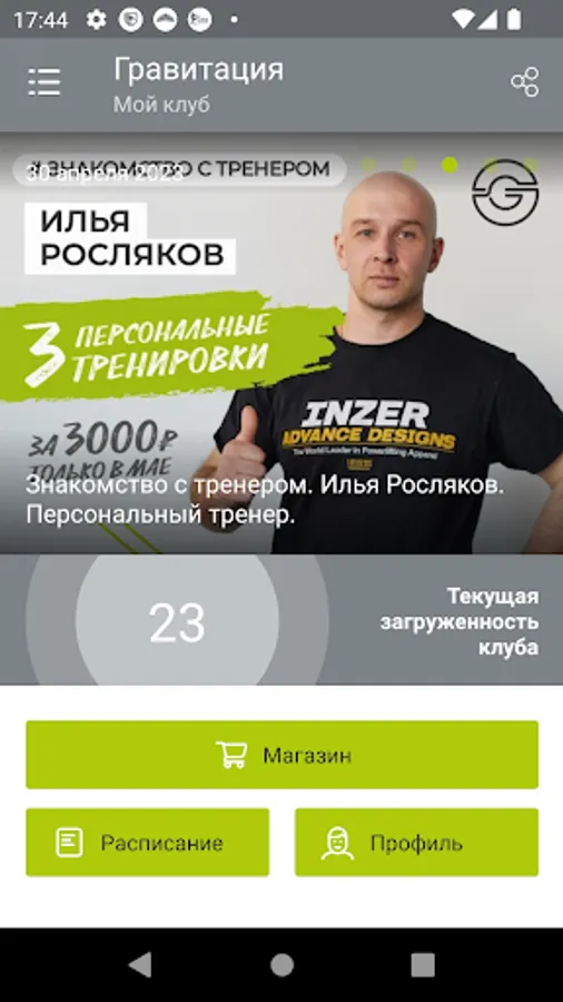 The mobile app is available for members of the club "Gravity". It can help you: follow the news and announcements of the club, follow the schedule to replenish the balance recorded in the workout.