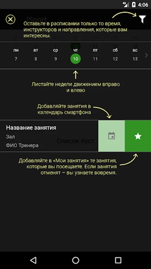 With iSport application you can follow the news, schedule of clubs, to receive information about changes in the schedule and special offers.