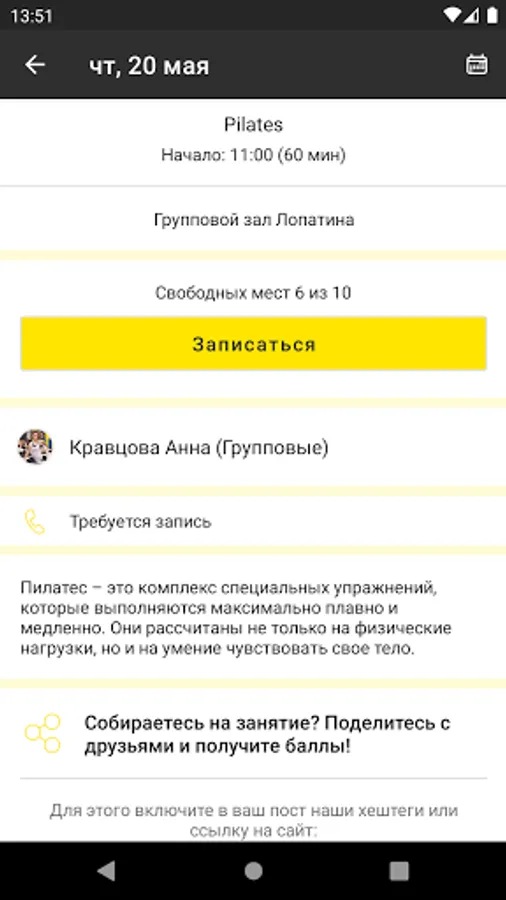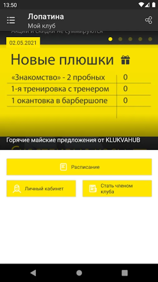 Using the application, you can follow the news, the club’s timetable, quickly receive information about changes in the schedule and special offers.