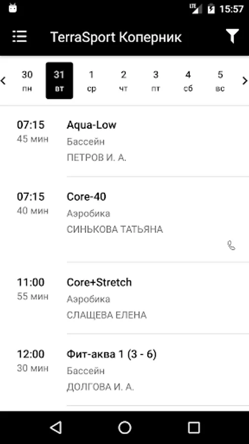 Using the application, you can sign up for classes and cancel reservations, follow the news, promptly receive information about changes in the schedule and special offers in TerraSport Copernicus.