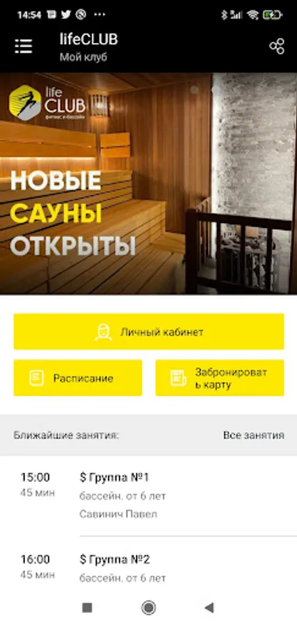 With the app you can follow the news, schedule of clubs, to receive information about changes in the schedule and special offers.
