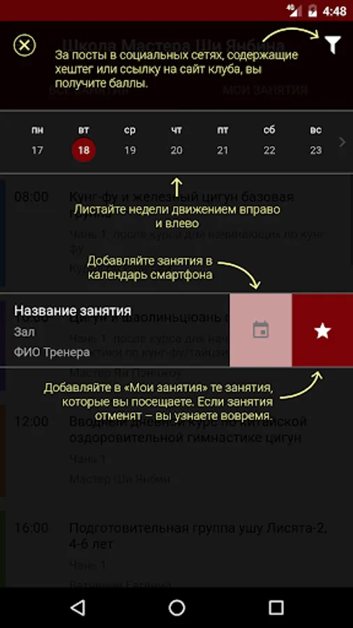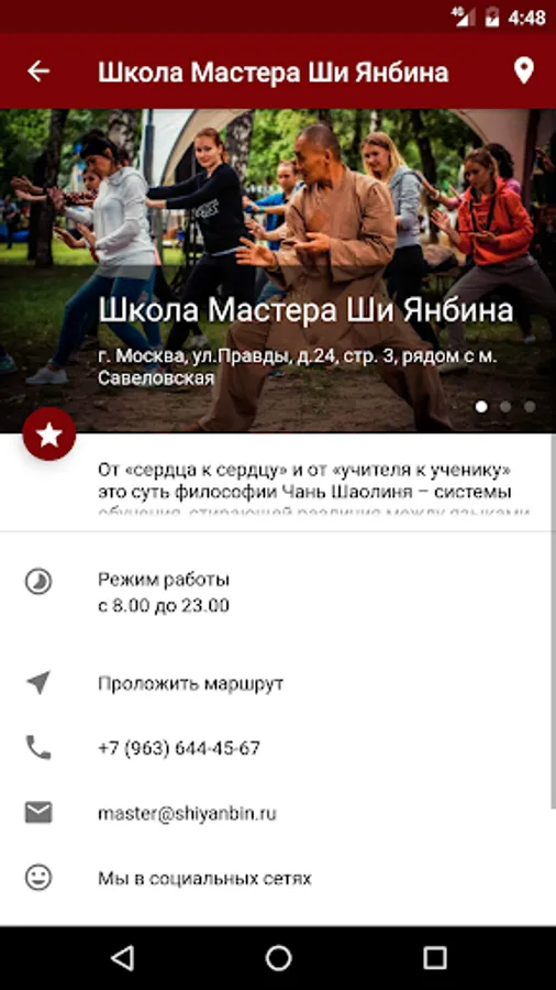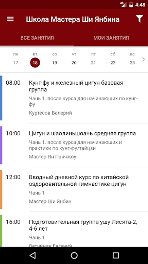 Application for students of the School Master Shi Yanbina. Current class schedule, news, seminars and events.