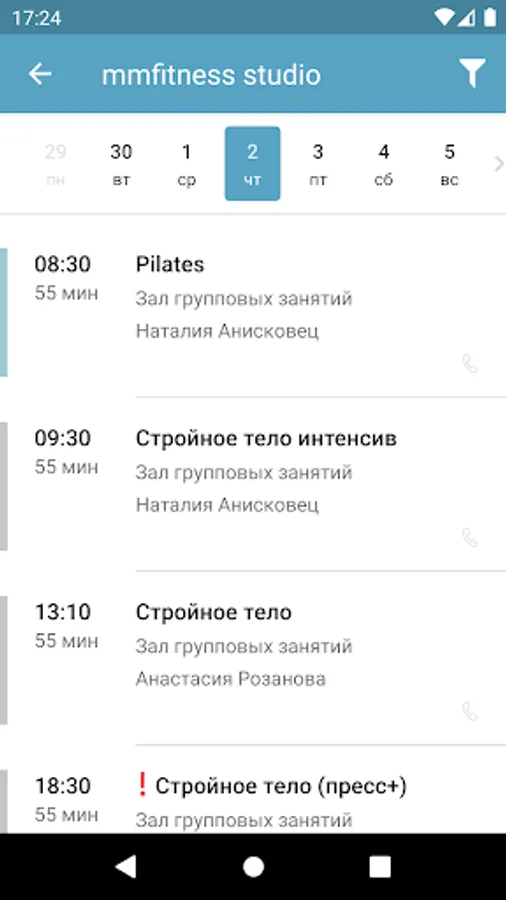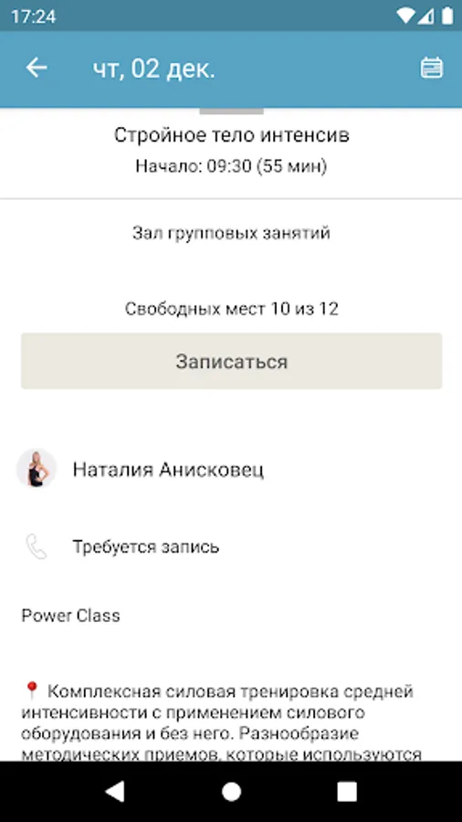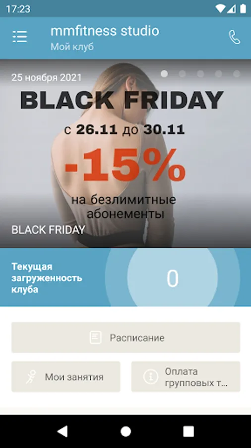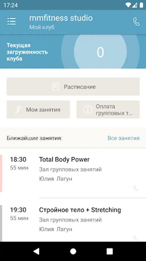Using the application, you can follow the club’s schedule, sign up for trainings, and quickly receive information about changes in the schedule and special offers.