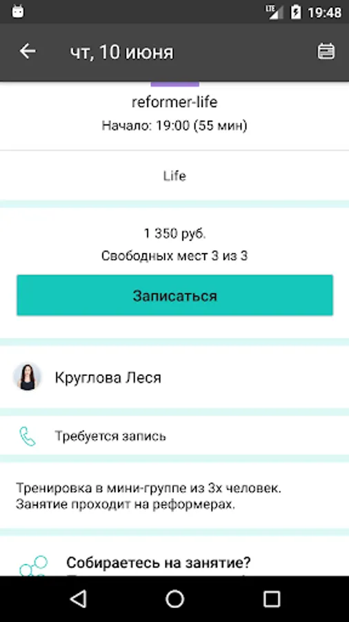 Using the application, you can sign up for classes, quickly receive information about changes in the schedule, follow the news and current offers