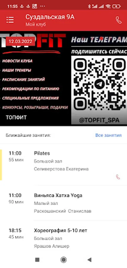 Using the application, you can follow the news, schedule of clubs, quickly receive information about changes in the schedule and special offers.
