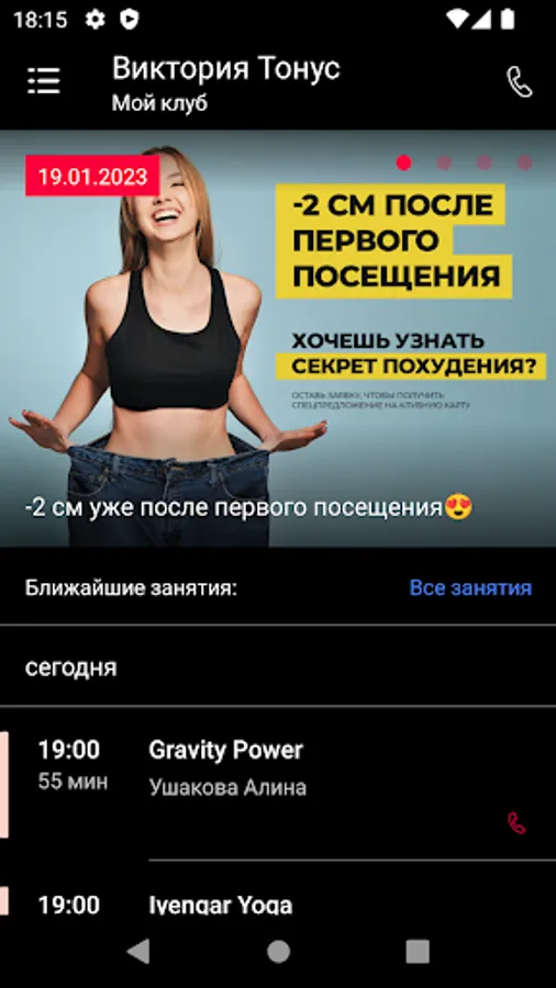 With the app you can follow the news, schedule of clubs, to receive information about changes in the schedule and special offers.