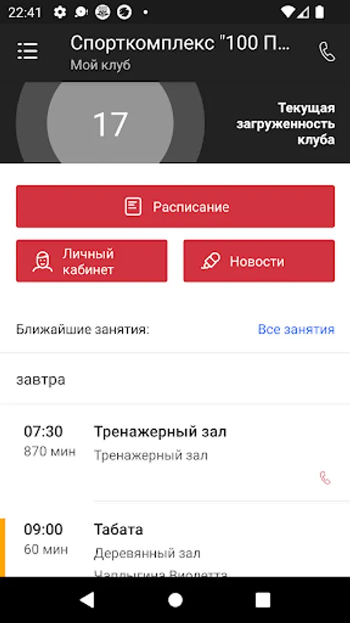 With the application you can follow the news, schedule group training and martial arts, self-recorded for training and pay them to "freeze" subscriptions, to receive information about changes in schedules, special offers and upcoming events of the sports complex "100 pounds"