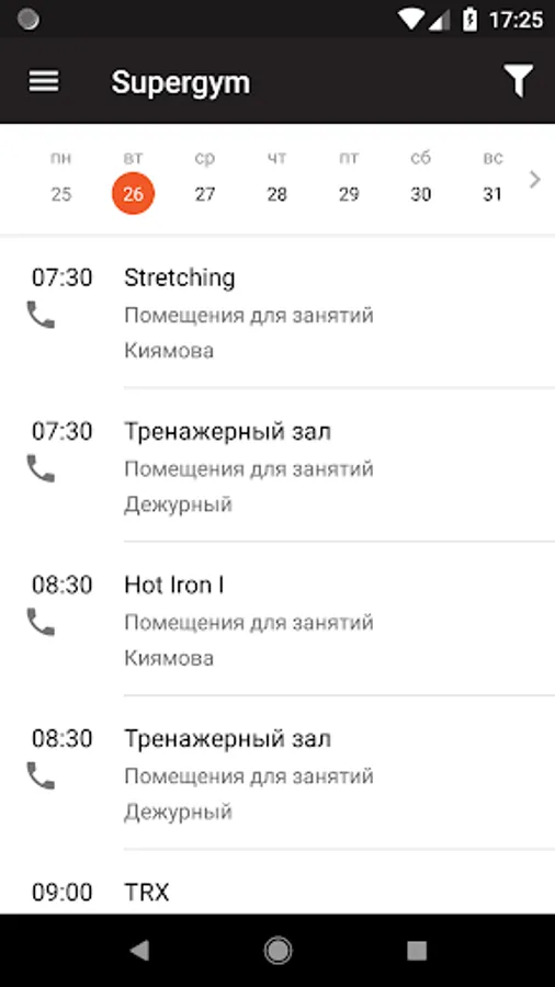 Using the application, you can follow the news, schedule of clubs, quickly receive information about changes in the schedule and special offers, sign up for workouts, ask questions, see how many workouts are still left, buy subscriptions